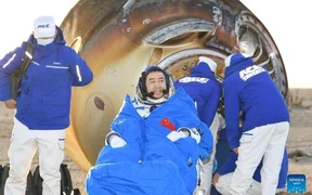 Бишкек, 17.11.25 /Кабар/. Космосто калып калган кытайлык "Шэньчжоу-20" космос кемесинин экипажы — Чэн Дон, Чжан Чжужан жана Ван Цзе узак убакыттык миссиясын ийгиликтүү аяктап, Жерге кайтып келишти. Бул тууралуу Казинформ агенттиги кабарлады.
