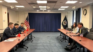 Бишкек, 17.04.26. /Кабар/. Экономика жана коммерция министри Бакыт Сыдыков Эл аралык валюта фондунун жана Дүйнөлүк банктын тобунун Жазгы жыйындарынын алкагында Вашингтон шаарында АКШнын Соода өкүлүнүн Түштүк жана Борбор Азия боюнча жардамчысы Брендан Линч менен жолугушту.