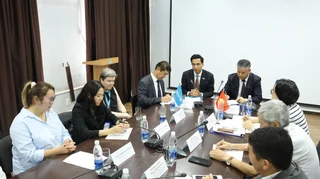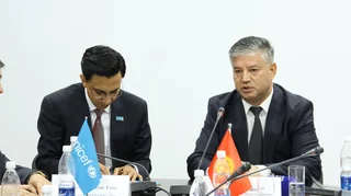 Иш-чарага эмгек министри Равшанбек Сабиров жана БУУнун Балдар фондунун (ЮНИСЕФ) Кыргызстандагы өкүлү Самман Тапа катышты.