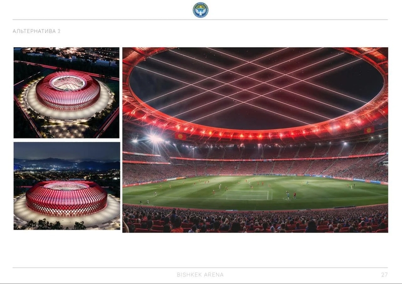 Бишкектин четиндеги Өрнөк айылында курулуп жаткан стадион Борбор Азиядагы эң ири, 51 миң көрүүчүгө ылайыкталган маанилүү спорттук борбор болмокчу. Имараттын отургучтар жайгашкан бөлүгүнүн аянты 70 миң м², ал эми курулуштун жалпы аянты 180 миң м² түзөт. Стадион 70 метр бийиктиктеги сегиз кабаттуу структурага жана диаметри 280 метр болгон тегерек формага ээ болот. Стадиондун жалпы аянты 85 миң м² түзөт.