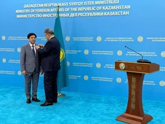 Бишкек, 04.11.25 /Кабар/. Казакстандын тышкы иштер министри Ермек Кошербаев Кыргыстандын Казакстандагы элчиси Дастан Дюшекеевге II даражалуу «Достык» орденин тапшырды.