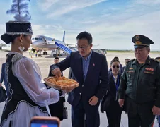 Жогорку даражалуу конокту "Манас" эл аралык аэропортунан Кыргызстандын коргоо министри Руслан Мукамбетов тосуп алды.