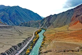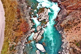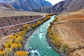 Күздөгү Көкөмерен — бул өзгөчө тынчтыктын абалы, дарыя жай аккан күмүш сымал агымы менен күн батышка бет алат, жээктеги кызыл-тазыл, алтын түстөгү кырлардын өңүн чагылдырып турат.