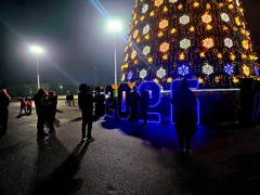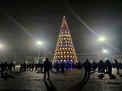 Бишкек, 19.12.25. /Кабар/. Бүгүн Манас шаарынын «Азаттык» аянтында жаңы жылдык балатынын оту жандырылды.