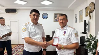 Бишкек, 23.07.25. /Кабар/. Бүгүн Чүй облустук ички иштер башкы башкармалыгынын башчысы Каныбек Абдырахманов Ички иштер министринин тапшырмасынын негизинде адам өмүрүнө коркунуч жаралган кырдаалда кайраттуулуктун жана кесипкөйлүктүн үлгүсүн көрсөтө алган кызматкерлерге “Каармандык” медалын тапшырды. Бул тууралуу Чүй ОИИББинин басма сөз кызматынан билдиришти.