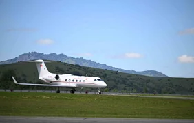 Адылбек Касымалиевди Тоолу-Алтай шаарынын аэропортунан Алтай Республикасынын башчысы Андрей Турчак жана башка расмий кызмат адамдары тосуп алды.
