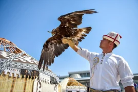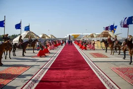 Флагштокторго эки өлкөнүн туулары илинип, килем төшөлүп, улуттук боз үй түрүндөгү инсталляция орнотулуп, ардактуу кароол тизилген.