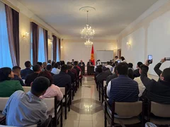 Бишкек, 26.06.25. /Кабар/. Тышкы иштер министринин орун басары Алмаз Имангазиевдин Россияга болгон жумушчу сапарынын алкагында Москва шаарындагы кыргыз диаспоралык бирикмелеринин өкүлдөрү менен жолукту.