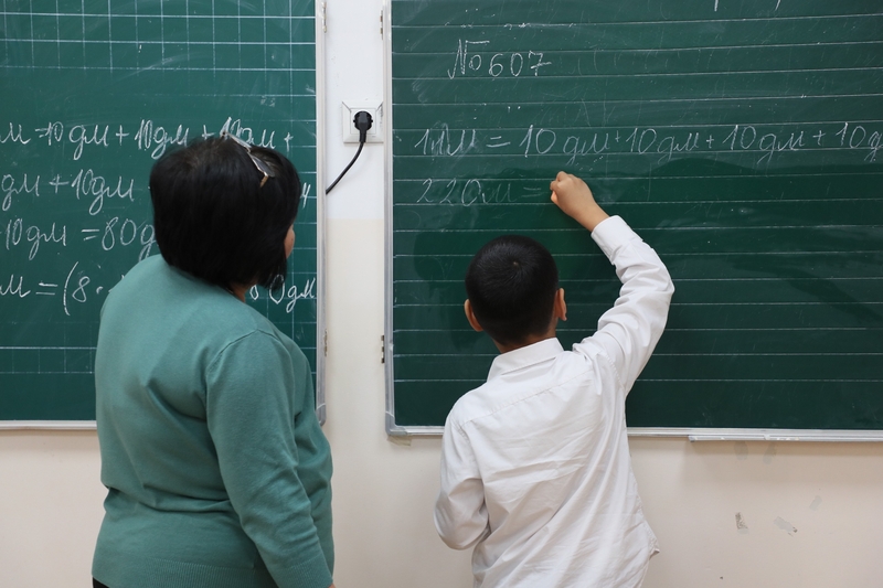 Нарын облусунун Ат-Башы районуна караштуу Биринчи май айылындагы Т.Тынымбаев атындагы орто мектебинин 20 жылдан ашуун тажрыйбасы бар математика мугалими Бүбүайша Жумукова бүгүнкү күндөгү окуучуларга эски ыкмаларды колдонуу туура келбей тургандыгын белгилеп, кырдаалды жумшартып кетүүнүн ыкмаларын сунуштады.
