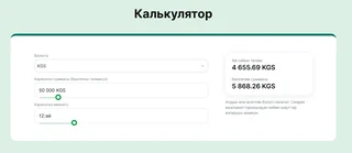 Биз бизнести өнүктүрүү үчүн мурабаха алууга кызыккан жаран катары 50 миң сом алып, 12 айга бөлүп төлөөнү карап көрдүк. Анда банктардын бири ай сайын төлөм 4655 сом болорун эсептеп берди. Ошондо биз алган 50 миң сомго 5868 сом кошуп төлөшүбүз керек болот экен.