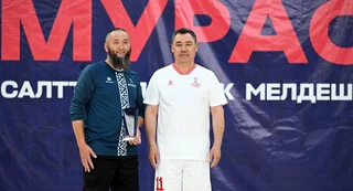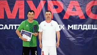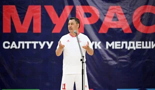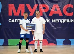 «Мыкты чабуулчу» — 7 гол киргизген президент Садыр Жапаров. Мамлекет башчысы акчалай сыйлыкты «Ыйман» командасына берди.