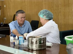 Бишкек, 04.08.25. /Кабар/. Бүгүн президенттин Нарын облусундагы өкүлүнүн аппаратынын кызматкерлери ыктыярдуу кан тапшыруу өнөктүгүнө катышуу үчүн медициналык текшерүүдөн өтүштү.