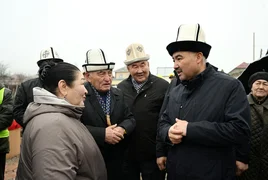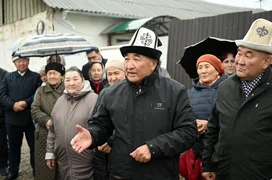 Салтанатта оорукананын кызматкерлери жана жергиликтүү эл менен жолугушкан Төрага Кербен шаарын өнүктүрүү багытында жүргүзүлүп жаткан иштер тууралуу учкай кеп кылды.