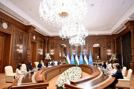 Самарканд, 30.10.25. /Кабар/. Самарканд шаарында Өзбекстандын президенти Шавкат Мирзиёев Бириккен Улуттар Уюмунун Билим берүү, илим жана маданият боюнча уюмунун (ЮНЕСКО) башкы директору Одри Азулени кабыл алды. Тараптар Өзбекстан менен ЮНЕСКОнун ар тараптуу кызматташтыгын кеңейтүү жана жаңы долбоорлорду ишке ашыруу маселелерин талкуулашты.