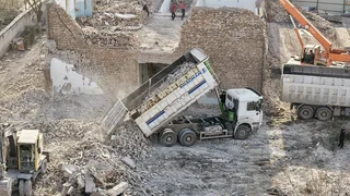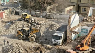 Учурда атайын техникалар тартылып, тиешелүү кызматтардын көзөмөлүндө коопсуздук талаптары так сакталган шартта демонтаж иштери этап-этабы менен жүргүзүлүүдө.