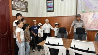 Калаа башчысы эл алдында үч эмге шаардан батир белекке берүүнү убадалап, бүгүн убадасын аткарып, үч эмди жана эгиз балдарды, алардын ата-энесин кабыл алып, үч бөлмөлүү батирдин сертификатын тапшырды.