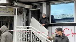 Бишкек, 13.02.26. /Кабар/. Ош шаарындагы "Аль Мансур" жана "Абу Бакр" кафелеринин имараттары буздурулууда.