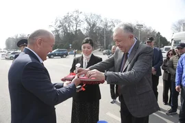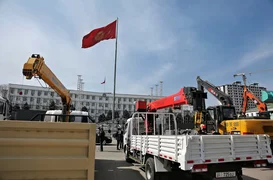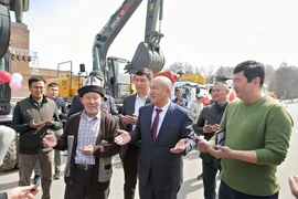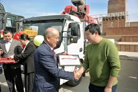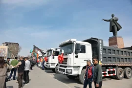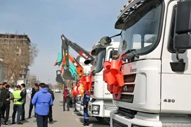 Бишкек , 17.03.25. /Кабар/. Бүгүн Ош шаарынын борбордук аянтында Ош шаарынын коммуналдык кызматтарына 8 жаңы атайын техника (2 “Shacman” маркасындагы жүк ташуучу унаа, 2 экскаватор, 2 автожүктөгүч, 2 манипулятор) жана Ош шаардык ички иштер башкармалыгынын кайгуул кызматына 4 жаңы жеңил унаа тапшырылды.