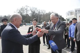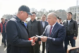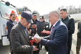 Белгилей кетсек, 4 жеңил унаа «Газпром Кыргызстан» ЖЧКсынын башкы директору Болот Абилдаевдин атынан «Ош Газ» ишканасынын жетекчиси Рашид Тагаев, 8 даана атайын техника «Дөөлөт курулуш» ЖЧКсынын «Базис-М» соода маркасынын башкы директору Максат Чунуев тарабынан берилди.