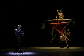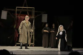 Бишкек, 21.04.25. /Кабар/. Ош шаарындагы Бабур атындагы театрда Кыргыз мамлекеттүүлүгүнүн башатында турган, мамлекеттик ишмер Жусуп Абдрахмановдун өмүр жолуна арналган "Жусуп" аттуу даректүү спектакли коюлду.