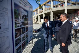 Президент Садыр Жапаров ознакомился с ходом строительства центра культурного обслуживания населения в Кара-Кульжинском районе