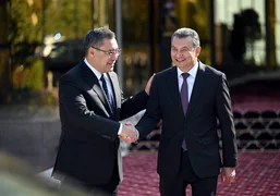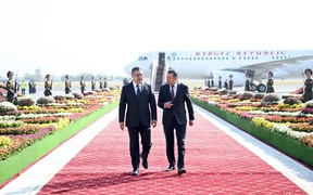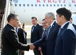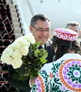 Президент Садыр Жапаровду Тажикстандын премьер-министри Кохир Расулзода жана башка расмий адамдар тосуп алышты.