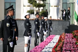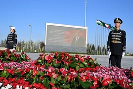 Аэропортто Борбордук Азия мамлекеттеринин мамлекеттик туулары илинип, килем төшөлүп, ардактуу кароол тизилген.