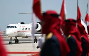 Мамлекет башчынын учагы Манама шаарындагы «Бахрейн» эл аралык аэропортуна конду.