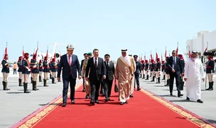 Президент Садыр Жапаровду Бахрейндин тышкы иштер министри Абдуллатиф бин Рашид Альзаяни жана башка расмий адамдар тосуп алышты.