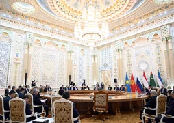 Андан соң Тажикстандын президенти Эмомали Рахмондун атынан жогорку даражалуу коноктордун урматына кабыл алуу уюштурулду. Ага чейин лидерлер Өкмөттүк резиденциянын аймагында кыска убакыт сейилдешти.