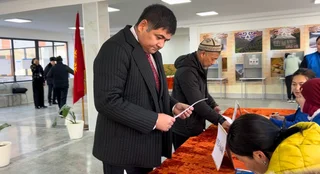 Бишкек, 17.11.2024. / Кабар /. Президенттин Чүй облусундагы өкүлү Канат Жумагазиев жергиликтүү кеңешттердин депутаттарын шайлоого катышып, Байтик айылындагы № 7202 шайлоо участогунда добуш берди.