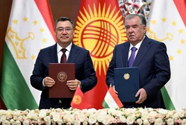 Бишкек, 08.07.25 /Кабар/. Кыргызстандын президенти Садыр Жапаровдун Тажикстанга болгон мамлекеттик сапарынын жүрүшүндө бүгүн, 8-июлда документтерге кол коюу жана алмашуу аземи болуп өттү.