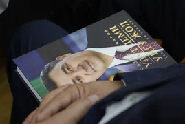 Бишкек, 07.10.25. /Кабар/. Бүгүн Улуттук илимдер академиясынын конференц-залында президент Садыр Жапаровдун "Улут деми — Уңгу жол (Тандалган сөздөр)" аттуу китебинин бет ачар аземи өттү. Бул тууралуу Маданият, маалымат жана жаштар саясаты министрлигинен билдиришти.