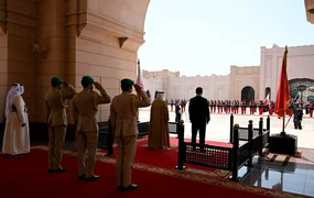 Президент Садыр Жапаровдун расмий сапарынын урматына 21 замбирек залпы атылды.