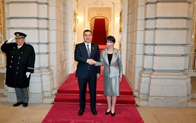 Мамлекет башчысын Япониянын премьер-министри Санаэ Такаити тосуп алды.