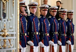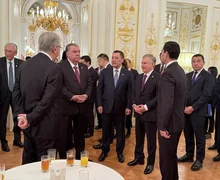 Андан соң президент Садыр Жапаров менен Япониянын премьер-министри Санаэ Такаити ардактуу кароол ротасынын жанынан кызыл килем үстүнөн өтүшүп, биргелешип сүрөткө түшкөндөн кийин Борбор Азия өлкөлөрүнүн лидерлеринин урматына уюштурулган тосуп алуу кечки тамагына катышуу үчүн залга өтүштү.