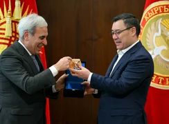 Бишкек, 14.03.26 /Кабар/. Президент Садыр Жапаров бүгүн, 14-мартта Эл аралык суу-мотор спорту союзунун (Union Internationale Motonautique) президенти Раффаэле Чиуллини кабыл алды.