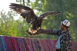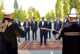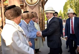 Мамлекет башчысын Гүлчө айылында «Кырк чоро» аттуу 40 жоокер жана төкмө акындар салтанаттуу тосуп алышты.