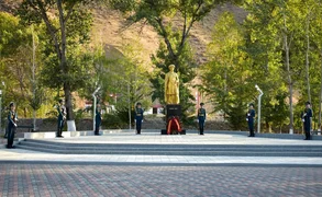 Иш-чаранын жүрүшүндө Садыр Жапаров Алымбек датка атындагы парктагы айкелге гүл койду. Азем Улуттук гвардиянын ардактуу кароолунун коштоосунда өттү.