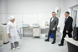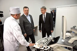 Президент дарылоо-диагностикалык кабинеттерди, анын ичинде гематология, рентгенография, флюорография жана ультрадобуштук диагностика бөлмөлөрүн көрүп чыкты.