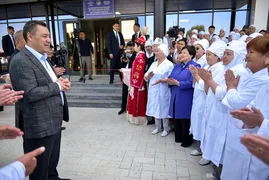 Мамлекет башчысы ошондой эле медициналык кызматкерлер менен кыскача баарлашып, алардын эмгек шарттарына жана мекеменин жабдылышына кызыкты.
