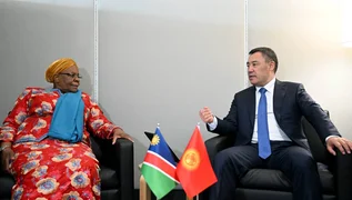 Бишкек, 24.09.25. /Кабар/. Президент Садыр Жапаров АКШнын Нью-Йорк шаарында БУУнун Башкы ассамблеясынын 80-сессиясынын Жогорку деңгээлдеги жумалыгынын алкагында Намибия Республикасынын президенти Нетумбо Нанди-Ндайтва менен жолугушту.