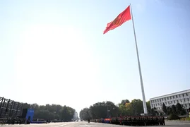 Бишкек, 05.10.25. /Кабар/. Президент Садыр Жапаров бүгүн, 5-октябрда Ош облусуна болгон иш сапарынын алкагында Ош шаарынын борбордук аянтында шаар күнүнө карата орнотулган жаңы флагштокко мамлекеттик тууну көтөрүү аземине катышты.