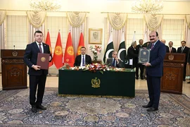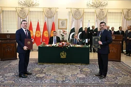 Бишкек, 04.12.25. /Кабар/. Президент Садыр Жапаровдун Пакистанга болгон мамлекеттик сапарынын алкагында бүгүн, 4-декабрда экономика, деңиз портторун пайдалануу, билим берүү, саламаттык сактоо, маданият, айыл чарба, туризм, энергетика, юстиция жана укуктук маселелер тармактарында кызматташтыкты кеңейтүү жаатында кол коюлган документтер менен алмашуу аземи болуп өттү.