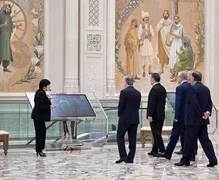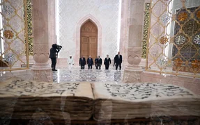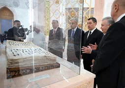 Азербайжан, Казакстан жана Тажикстандын лидерлери менен бирге президент Садыр Жапаров Ыйык Куран залын көрүп чыкты, ал жерде Усмандын Мусхафы - ислам дүйнөсүндөгү эң байыркы жана эң ыйык кол жазмалардын бири сакталат.