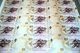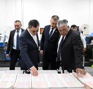 Андан соң президентке Кыргызстанда басылып чыккан улуттук валютанын алгачкы үлгүсү көрсөтүлдү.