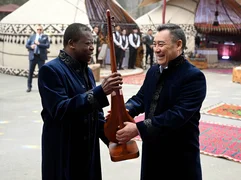 Иш-чаранын жүрүшүндө Садыр Жапаров Фор Эссозимна Гнассингбеге кыргыз улуттук музыкалык аспабы — комузду белекке берип, аны улуттук суусундуктар менен сыйлады.