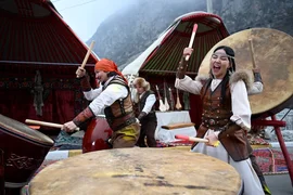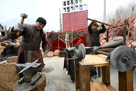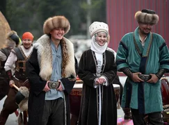 Меймандарды төкмө акындар жана улуттук зоот кийимчен баатырлар тосуп алышты.