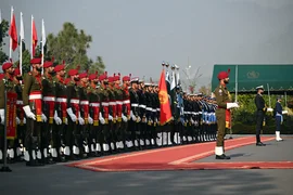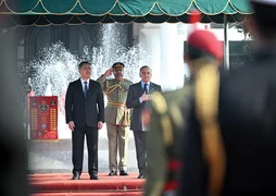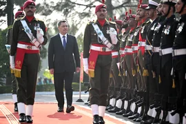 Саламдашуудан кийин эки өлкөнүн мамлекеттик гимндери аскердик оркестрдин коштоосунда жаңырды.