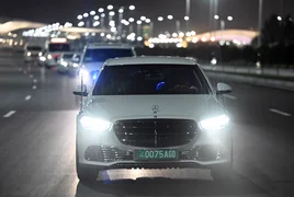 Президент Садыр Жапаровду аэропорттон Түркмөнстандын Халк Маслахатынын төрагасы Гурбангулы Бердымухамедов жана башка расмий адамдар тосуп алышты.